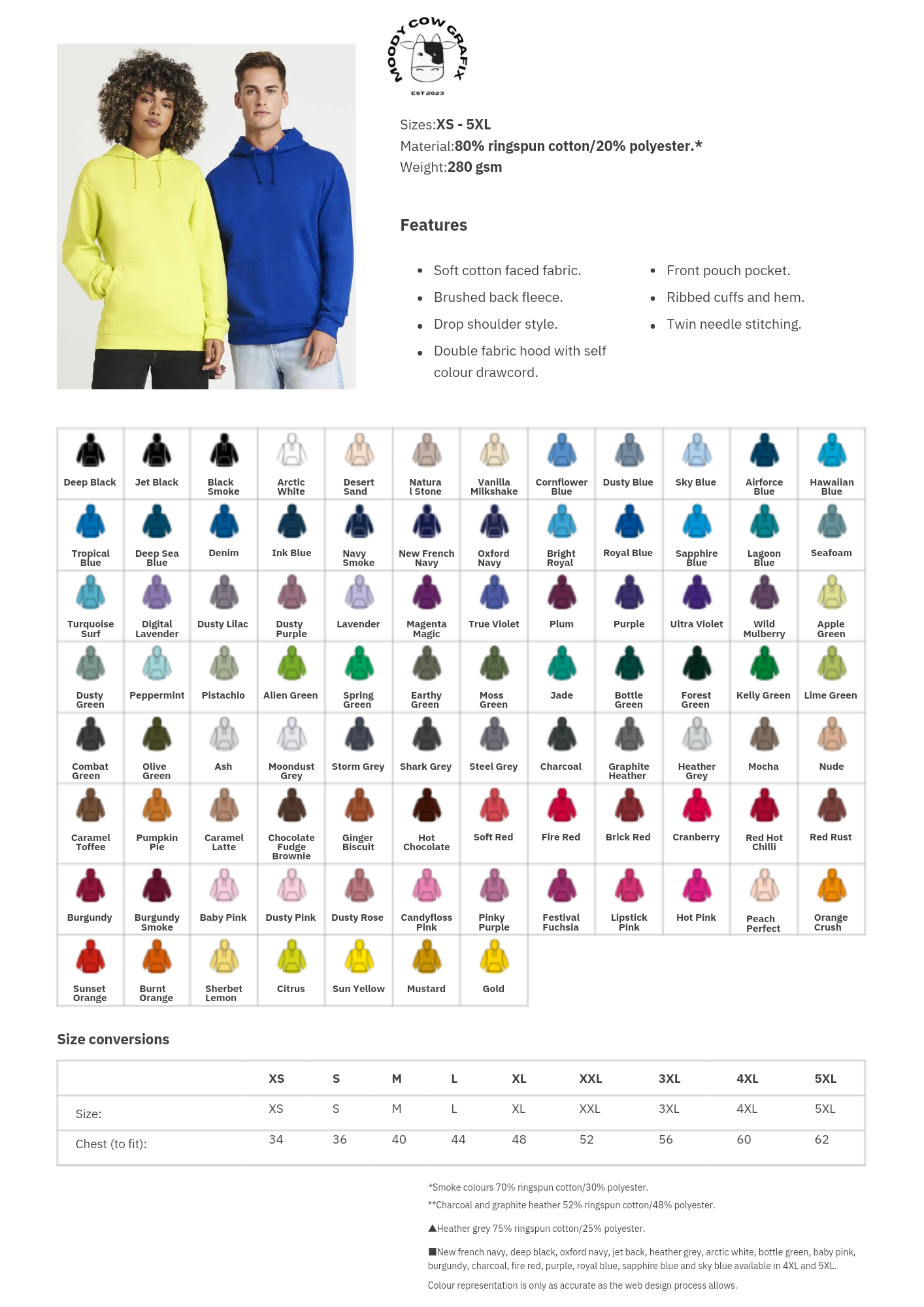 Please ensure if ordering 4XL or 5XL they are available in the chosen colour.