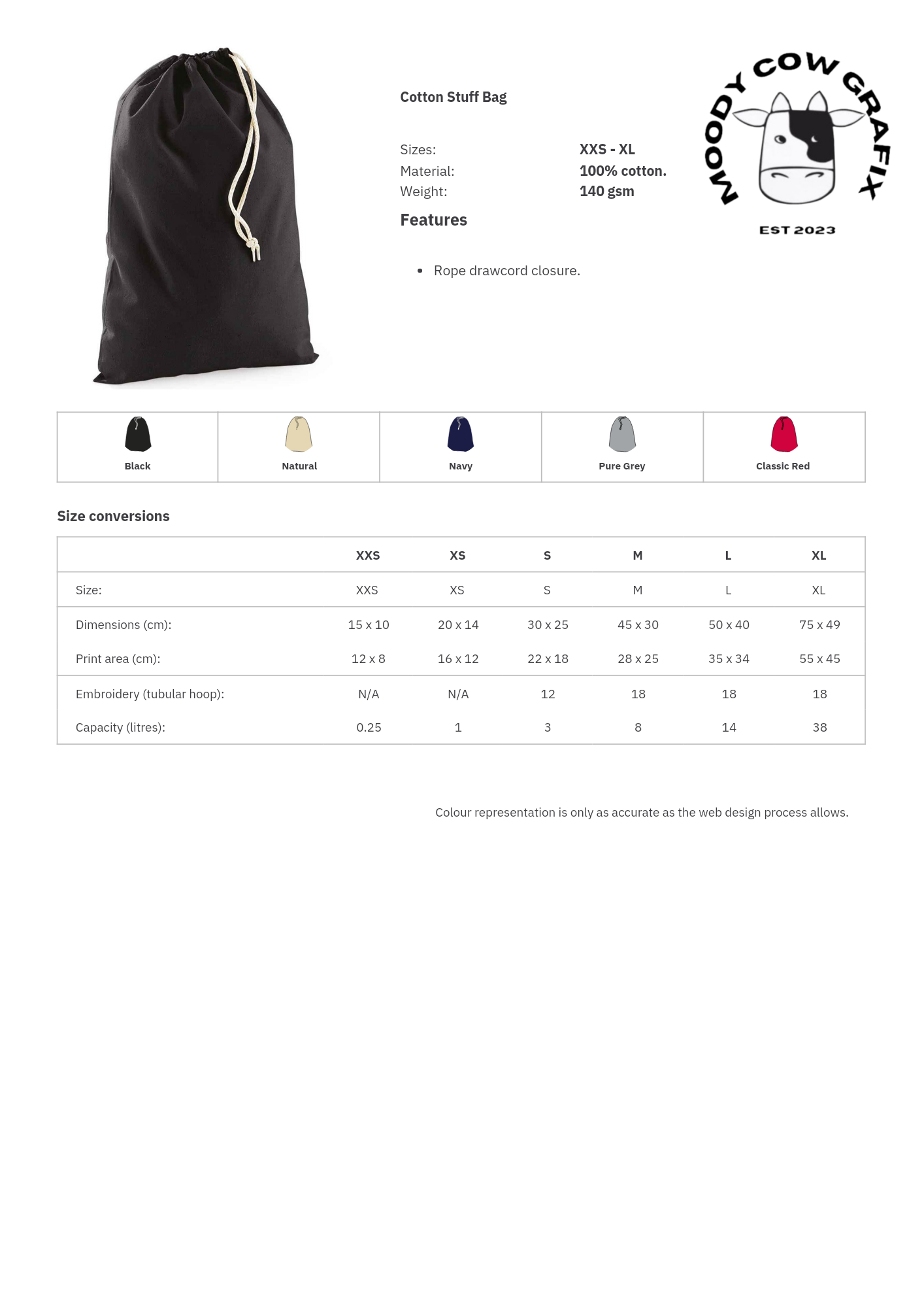 Made of 100% cotton, these bags come in 5 different colours and are perfect for utensils, student belongings, and even as personalised Santa sacks.