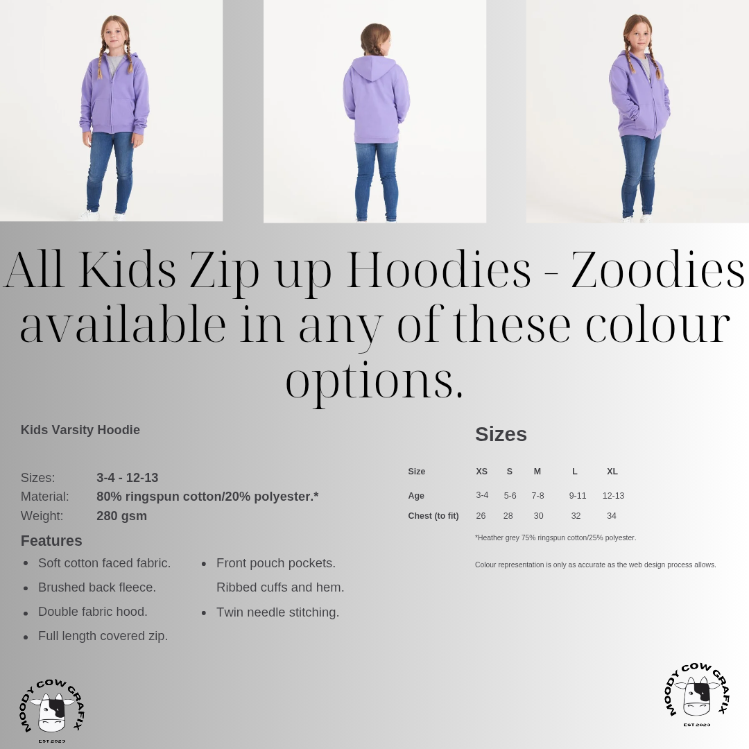 Introducing our unisex Kids Zip up Hoodie - Zoodie, made from a mix of 80% ringspun cotton and 20% polyester*.
