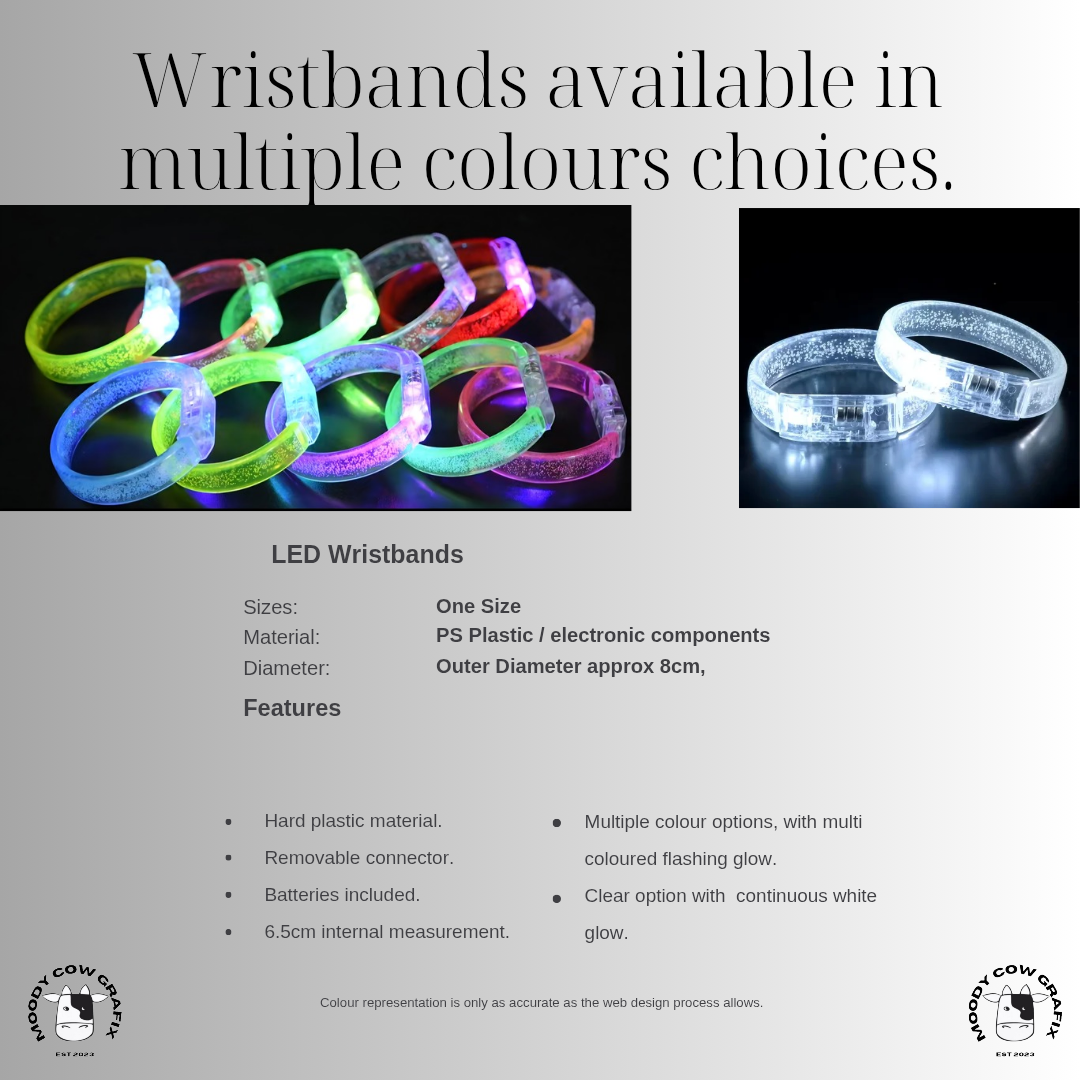 We proudly introduce our LED wristbands, crafted from PS plastic and featuring integrated electrical components.